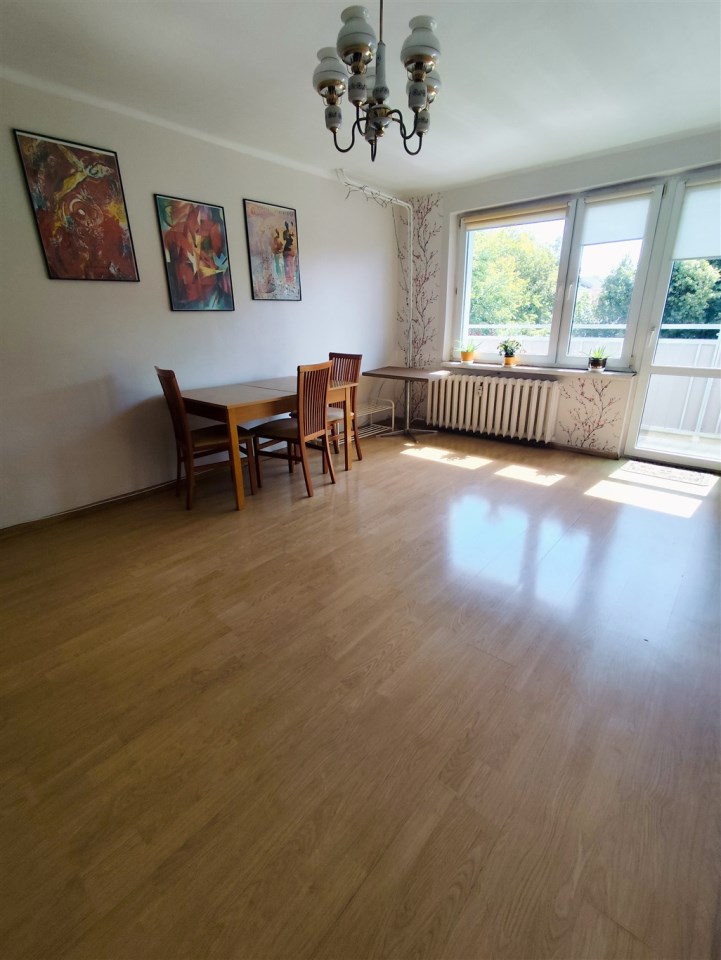 Duży, przestronny salon z wyjściem na balkon, dwie niezależne sypialnie, osobna widna kuchnia, duża łazienka oraz osobne WC. W pokojach panele, na ścianach gładzie gipsowe. W kuchni płytki na podłodze. Przestronna łazienka z kabiną prysznicową na wyposażeniu.