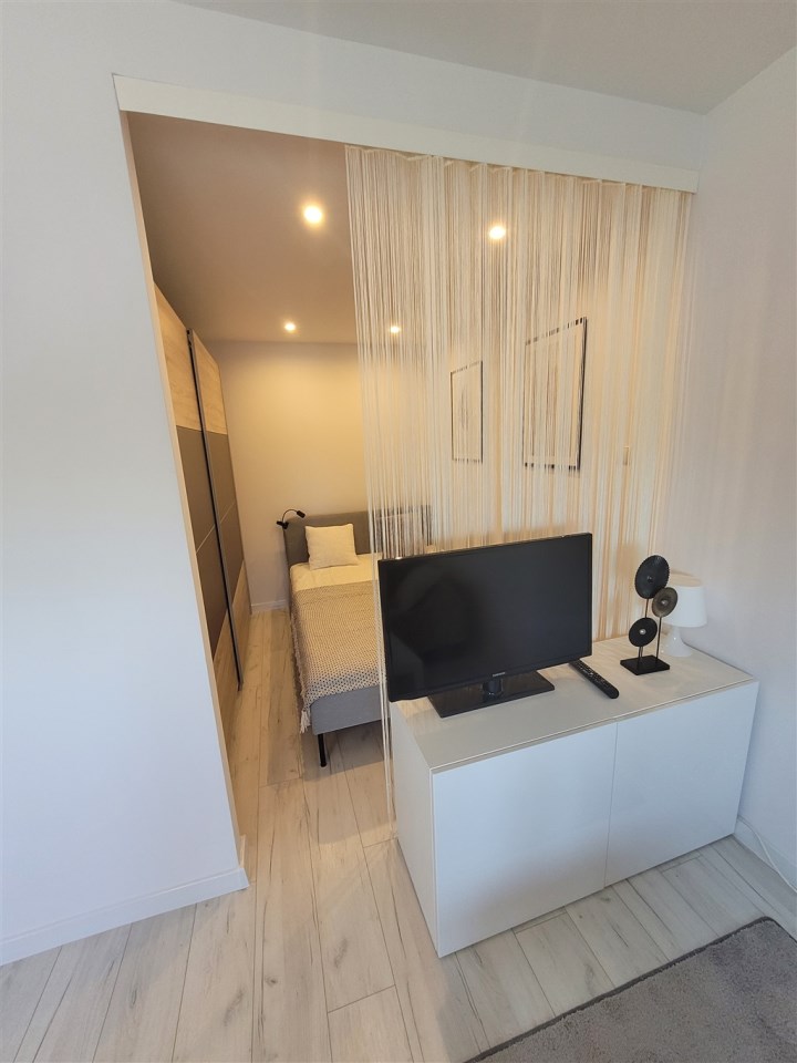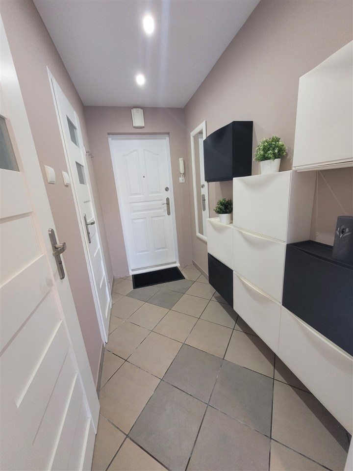 Nowa stolarka drzwiowa oraz okienna. Na podłogach zastosowane zostały panele (sypialnia oraz salon) oraz płytki (przedpokój). Na ścianach gładzie gipsowe. W łazience na ścianach i podłodze płytki, na wyposażeniu wanna. Wymienione zostały wszystkie instalacje - elektryczna, wodno-kanalizacyjna wraz z pionami.
